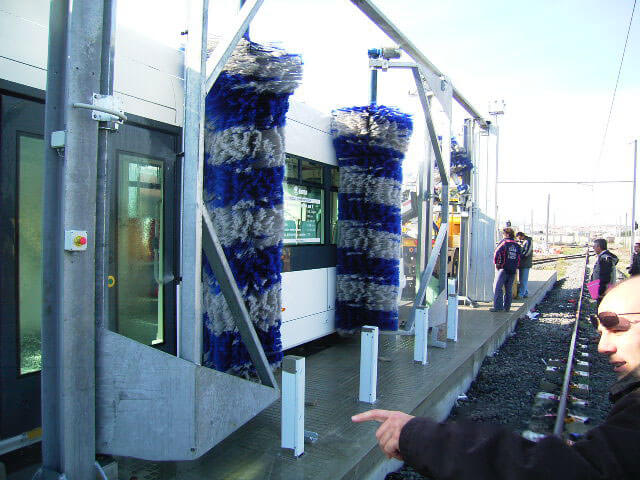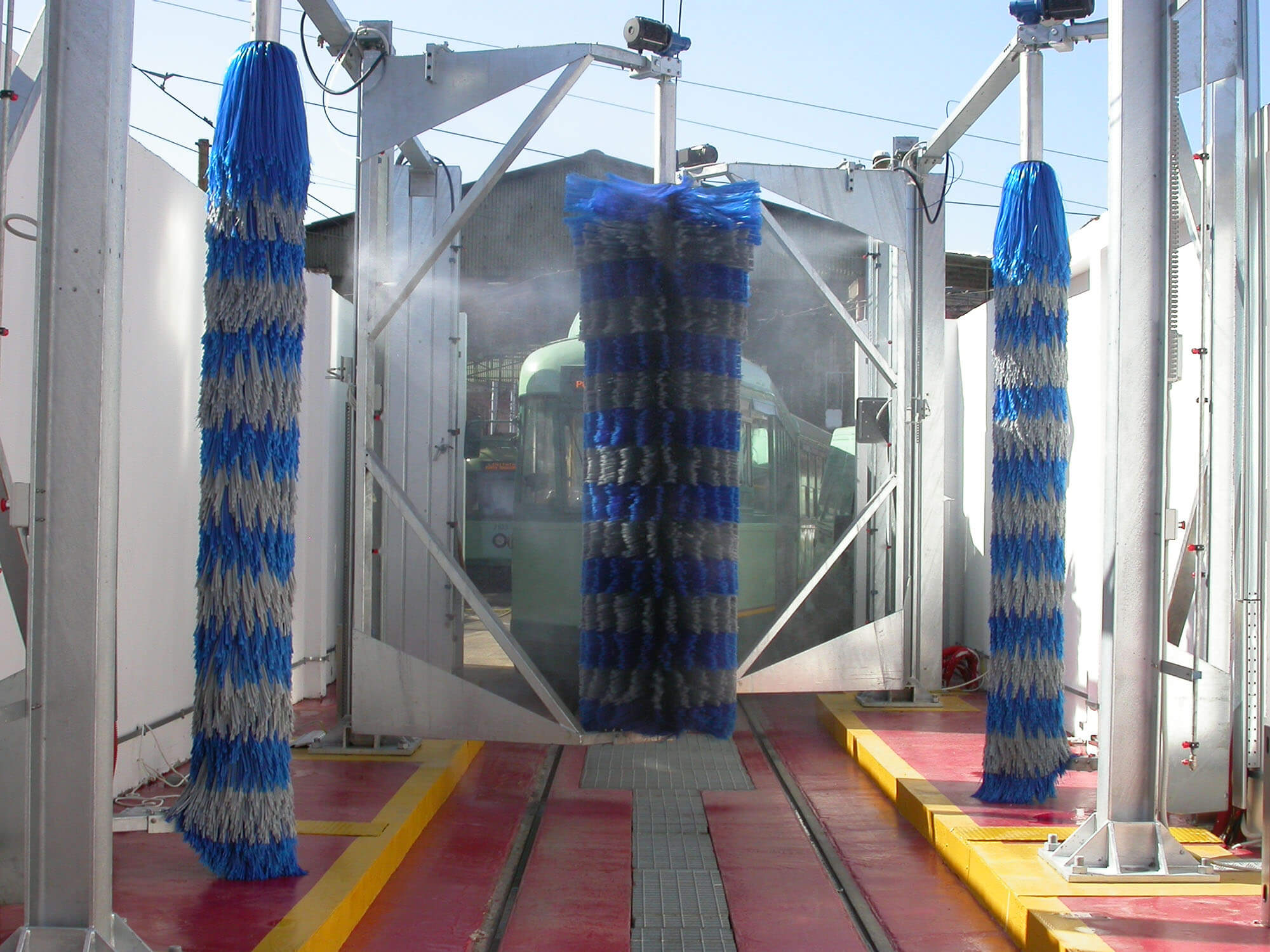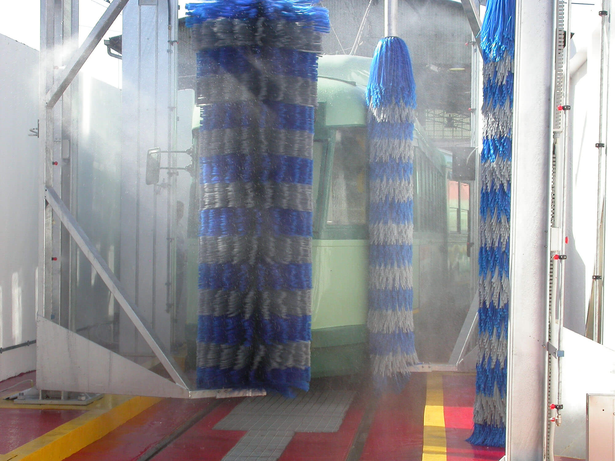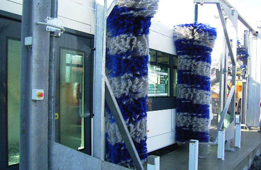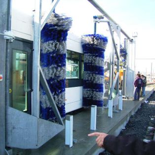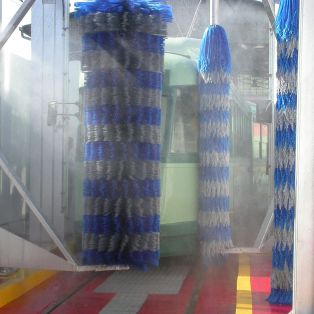 Questo impianto è composto da quattro spazzole verticali che operano in sincronia e con precisione mentre il conducente guida il veicolo attraverso l'impianto.