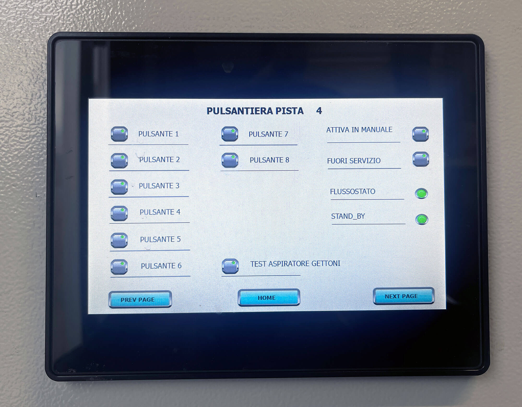 Gestione della macchina tramite un moderno tastierino con schermo tattile da 5,7”. La navigazione dei vari menù per la gestione dell’impianto è particolarmente intuitiva e può avvenire anche da PC o tablet.